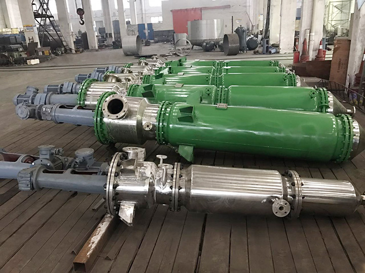 4、改變刮板溝槽旋轉(zhuǎn)方向,可以調(diào)節(jié)物料在蒸發(fā)器的打理時間。
